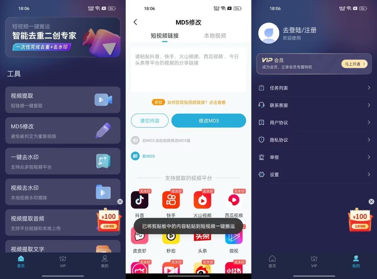 一键搬运App支持一键去水印、MD5修改、视频一键提取、视频提取文字、敏感词检测等功能. 解锁高级会员版 https://caiyun.139.com/m/i?2jQXm9e8GdDod 来自 · 微吧APP